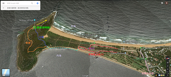 是個狹長半島的盡頭,分隔著風平浪靜的內海(Pittwater)與波濤洶湧的外海